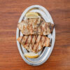 (porción de 500 grs) con papas fritas, ensalada mixta, cabutia asada o puré de papas